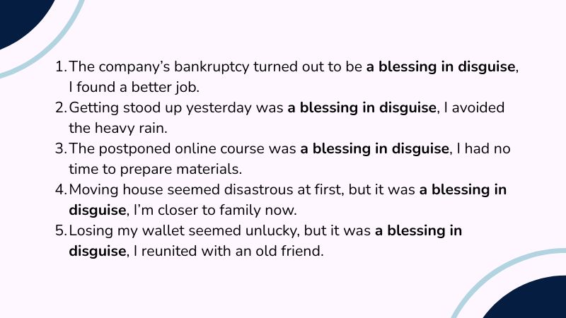 Hiểu rõ cách dùng a blessing in disguise giúp bạn nhìn nhận cuộc sống lạc quan hơn. Nếu còn bất kỳ thắc mắc nào khác, hãy để lại bình luận phía dưới này nhé!