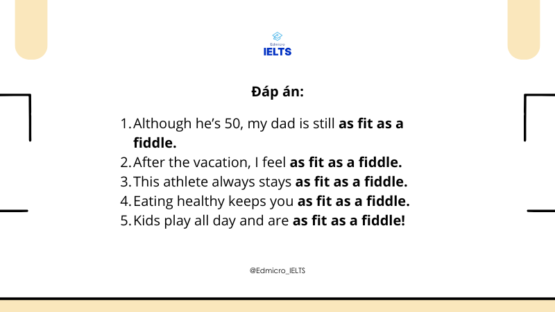 Qua bài viết này, mong rằng các bạn đã hiểu rõ về as fit as a fiddle – thành ngữ vui nhộn để khen ngợi sức khỏe. Nếu muốn biết thêm thành ngữ thú vị, đừng quên theo dõi Edmicro nhé!