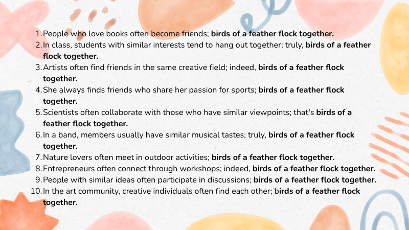 B: Me too. Birds of a feather flock together, after all. (Tớ cũng vậy. Ngưu tầm ngưu, mã tầm mã mà.)