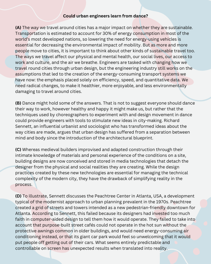 Cùng Edmicro đọc bài đọc Could urban engineers learn from dance thật kỹ để làm tốt bài tập này nhé!