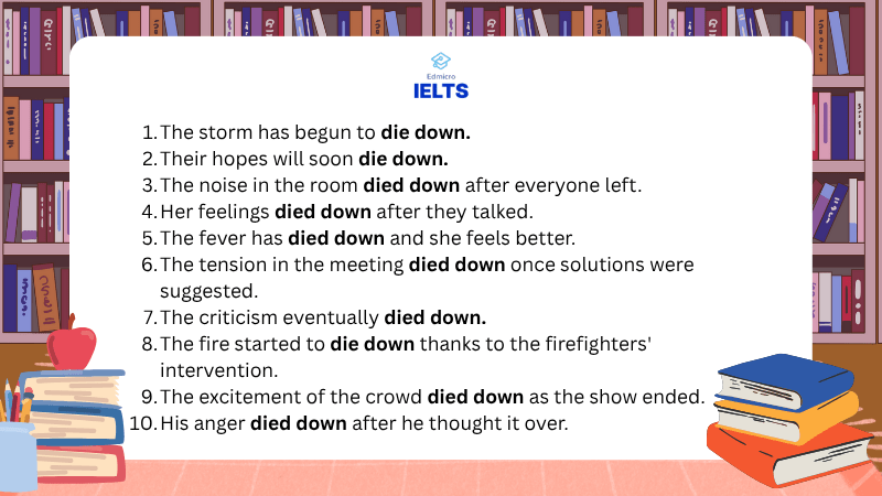 Bài tập: Viết lại những câu dưới đây bằng tiếng Anh với cụm từ Die down:
