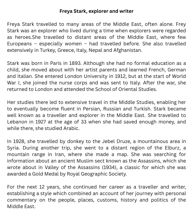 Freya Stark, explorer and writer – Bài đọc và bộ câu hỏi