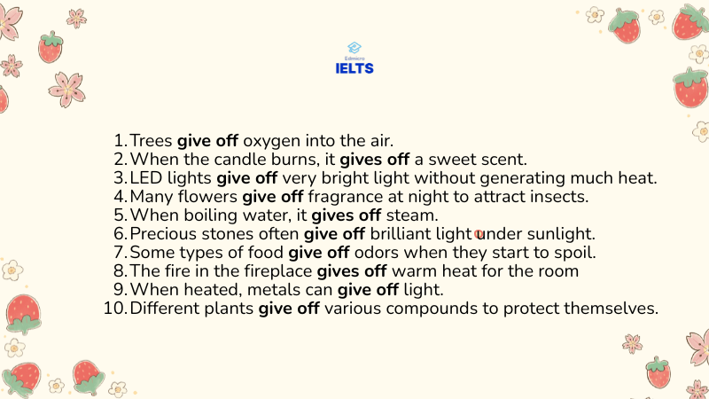 Bài Tập: Dịch các câu sau từ tiếng Việt sang tiếng Anh sử dụng cụm từ “give off”