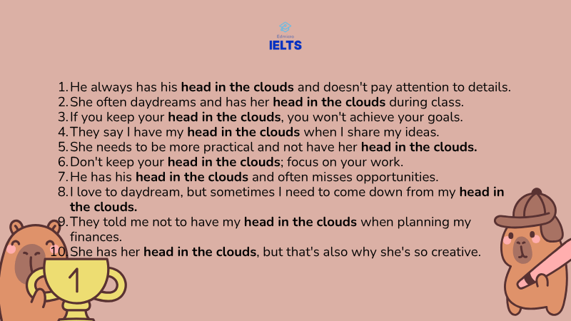 Bài tập: Viết lại những câu dưới đây bằng tiếng Anh với cụm từ Head in the clouds: