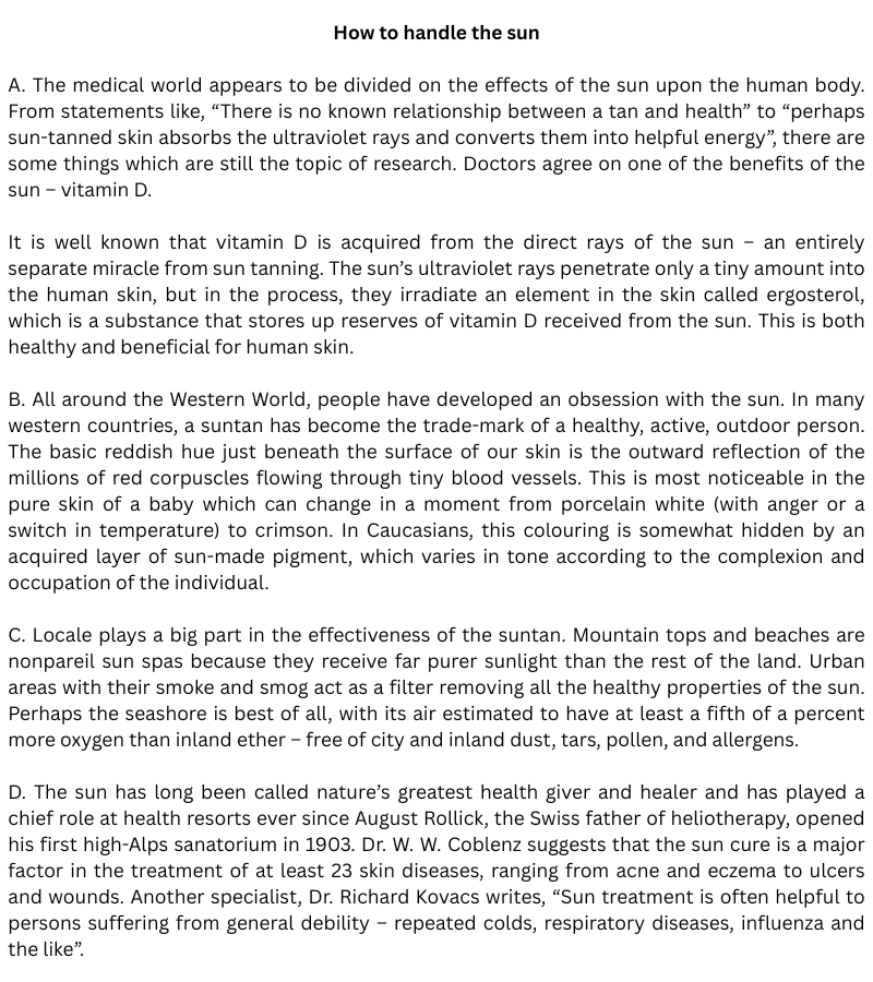 Cùng Edmicro đọc kỹ đề bài bài đọc How to handle the sun để làm tốt bài đọc này nhé!