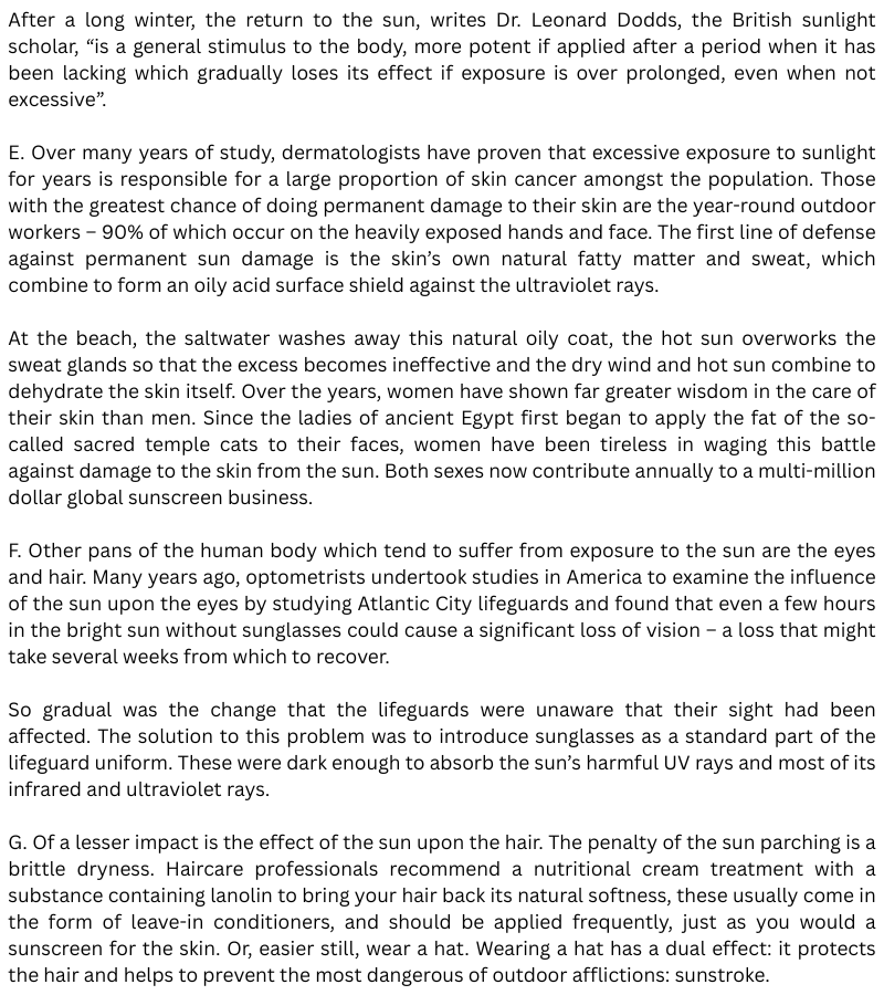 Trích dẫn: “After a long winter, the return to the sun, writes Dr. Leonard Dodds, is a general stimulus to the body… which gradually loses its effect if exposure is over prolonged…”