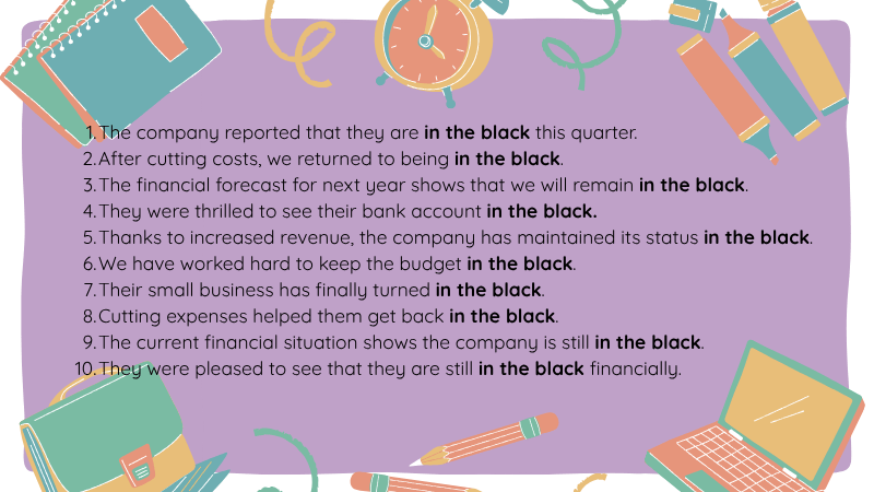 - After years of struggling, the company is finally in the black. (Sau nhiều năm chật vật, công ty cuối cùng cũng có lãi.)