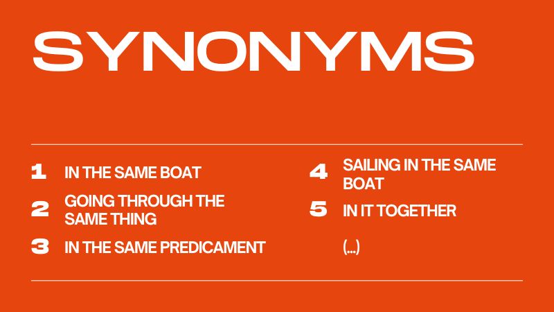 Cụm thành ngữ này thường được dùng để thể hiện sự đồng cảm, chia sẻ khó khăn hoặc khích lệ người khác bằng cách nhấn mạnh rằng họ không đơn độc.