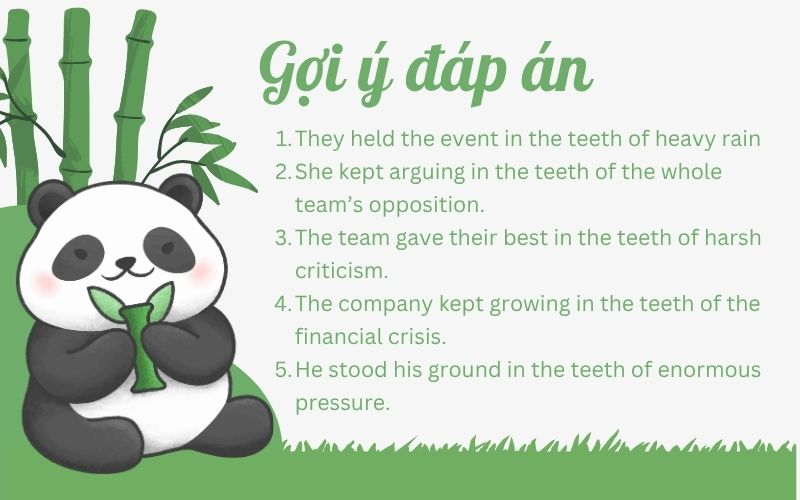 Bài tập: Dịch các câu sau sang tiếng anh và sử dụng in the teeth of