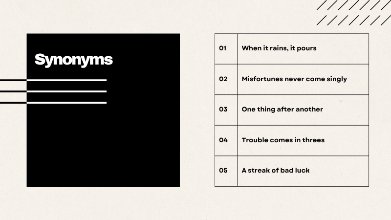 It never rains but it pours đồng nghĩa