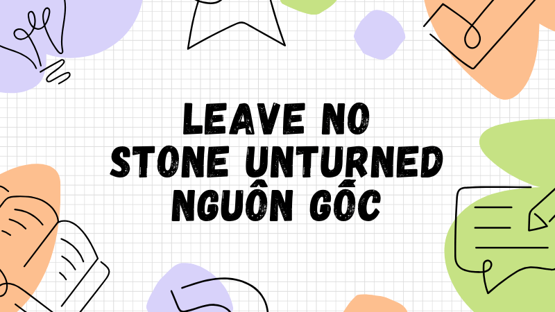 Câu thành ngữ “leave no stone unturned” có nghĩa là nỗ lực mọi cách để đạt được một mục tiêu hoặc tìm kiếm một cách kỹ lưỡng cho điều gì đó. Nguồn gốc của nó có thể được truy nguyên từ thời cổ đại và thường được gán cho nhà soạn kịch Hy Lạp Euripides, người đã sử dụng một cụm từ tương tự trong các tác phẩm của mình.
