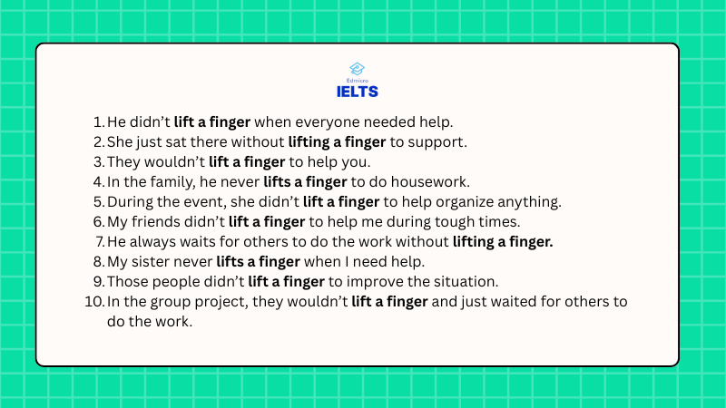 Bài tập: Viết lại chúng sang tiếng Anh bằng cách sử dụng cụm từ “lift a finger”.