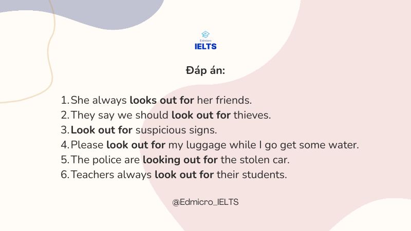 Bài tập: Hãy dịch các câu dưới đây sang tiếng Anh, sử dụng cụm từ “look out for”: