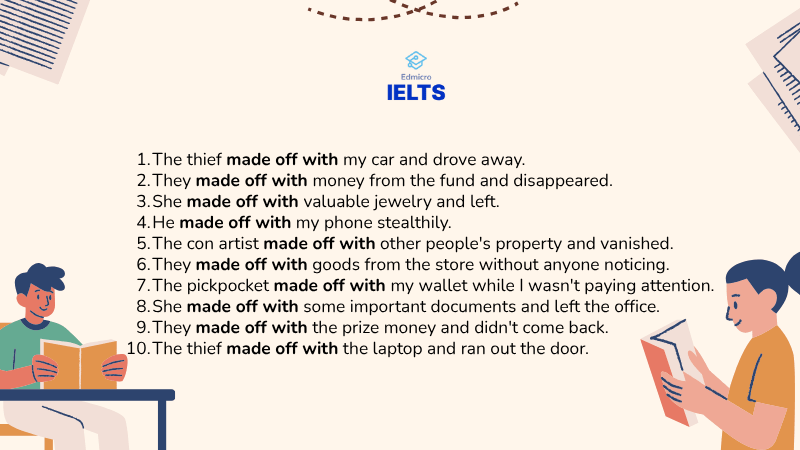 Dưới đây là 3 đoạn hội thoại dài hơn sử dụng cụm động từ “make off with”: