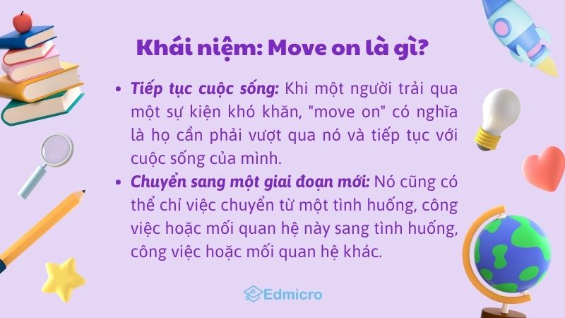 Move on là gì? Chắc hẳn không ít người cảm thấy quen thuộc với cụm từ này? Trong bài viết hôm nay, hãy cùng Edmicro tìm hiểu ý nghĩa và cách dùng cụ thể của Move on trong thực tế nhé!