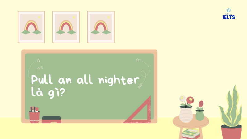 “Pull an all nighter” là một thành ngữ tiếng Anh (idiom) có nghĩa là thức trắng đêm, không ngủ suốt đêm để làm việc gì đó, thường là học bài, hoàn thành một dự án, hoặc tham gia một hoạt động nào đó kéo dài cả đêm.