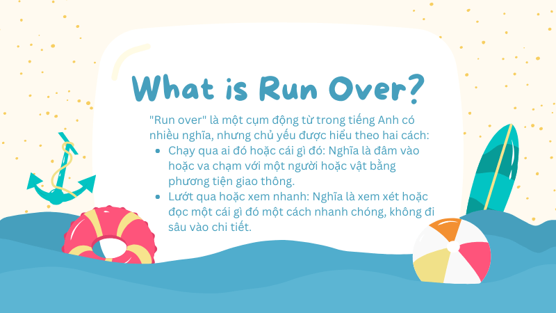 Run over” là một cụm động từ trong tiếng Anh có nhiều nghĩa, nhưng chủ yếu được hiểu theo hai cách: