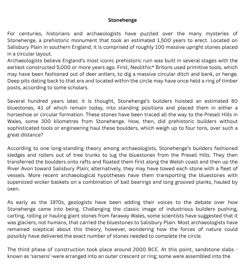 Dưới đây là bài đọc và câu hỏi của bài Stonehenge IELTS Reading, cùng Edmicro đọc kỹ nhé!