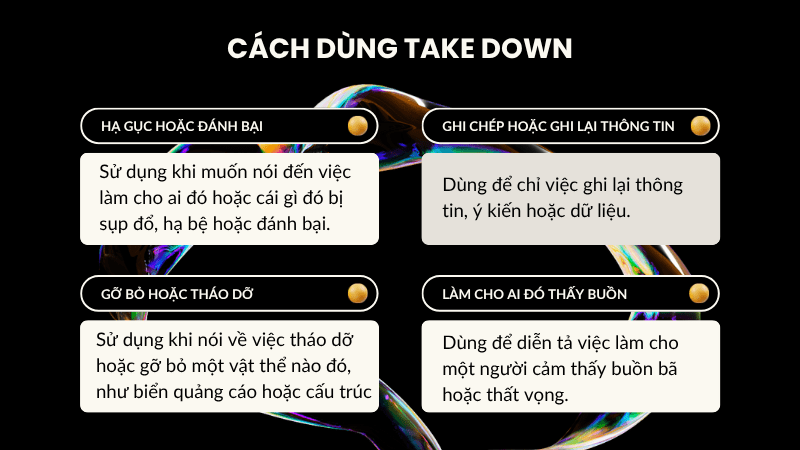 Cách dùng take down là gì?