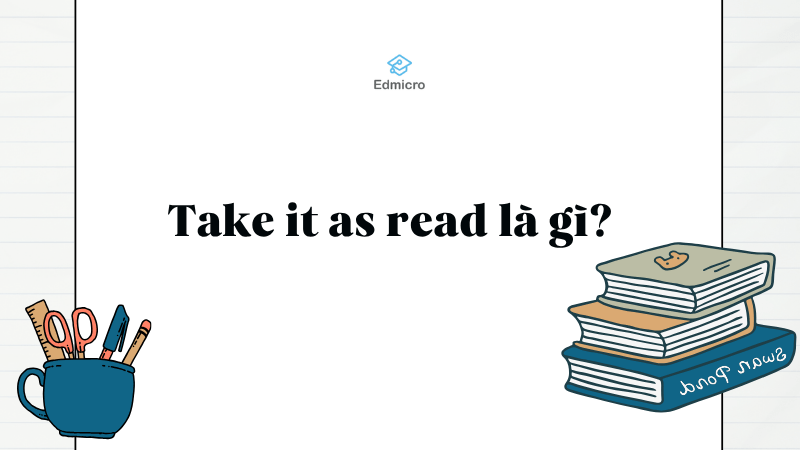“Take it as read” là một cụm từ thường được sử dụng khi muốn ngầm định rằng một thông tin nào đó đã được biết đến hoặc chấp nhận mà không cần thảo luận thêm. Hãy cùng Edmicro khám phá ý nghĩa và cách sử dụng của “take it as read” để hiểu rõ hơn về cách truyền đạt thông tin một cách hiệu quả và tiết kiệm thời gian.