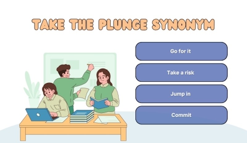 Để tăng vốn từ vựng, các bạn nên tham khảo thêm các cụm từ đồng nghĩa có thể thay thế take the plunge trong những ngữ cảnh tương tự.