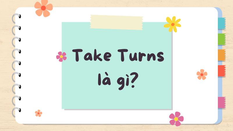 Take turns là một cụm động từ mang ý nghĩa “thay phiên” hoặc “đến lượt”. Cụm từ này thường được sử dụng để chỉ hành động mà nhiều người tham gia vào một hoạt động nào đó và mỗi người sẽ có một khoảng thời gian hoặc cơ hội nhất định để tham gia.