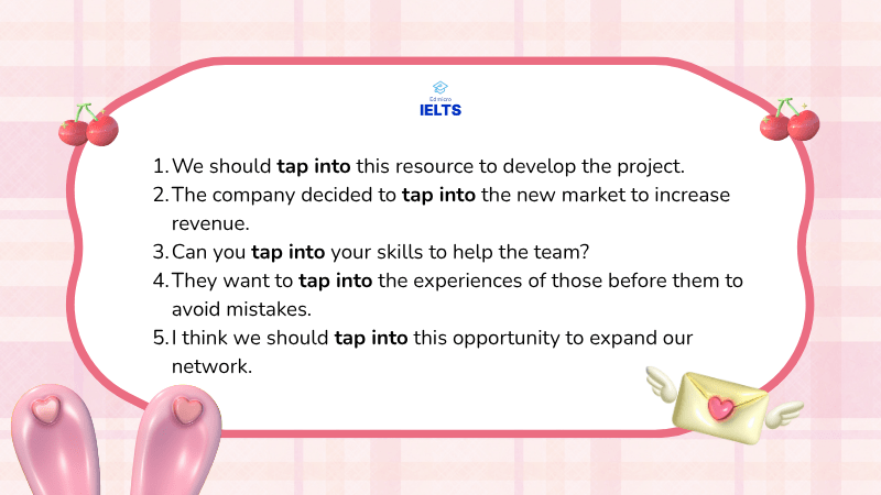 Việc nắm vững ý nghĩa và các từ đồng nghĩa của “tap into” sẽ giúp bạn diễn đạt một cách hiệu quả khả năng khai thác cơ hội và tận dụng lợi thế của mình trong nhiều tình huống khác nhau.