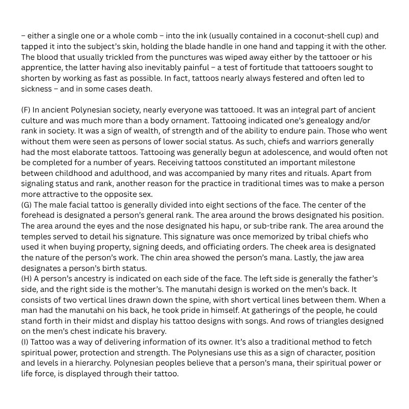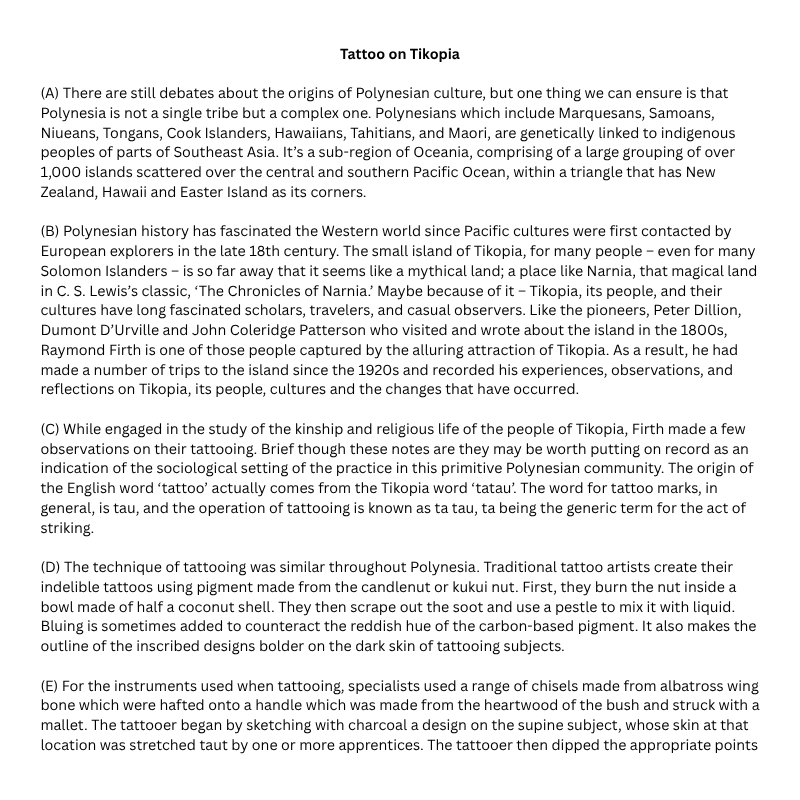 Tattoo on tikopia IELTS reading answers
