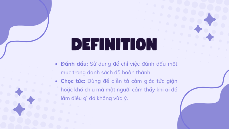 - Đánh dấu: Sử dụng để chỉ việc đánh dấu một mục trong danh sách đã hoàn thành.
