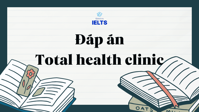Total health clinic là bài đọc xuất hiện trong đề Cambridge IELTS 14, Test 2, Listening Section 1, tại bài viết dưới đây, hãy cùng Edmicro xem qua đáp án cũng như giải thích đáp án cho từng câu: