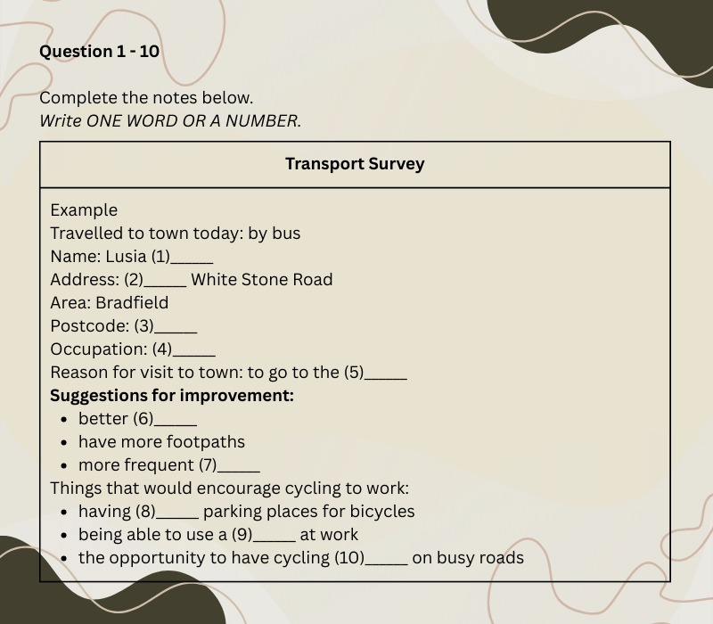 Dưới đây là Transcript đề Transport survey IELTS Listening: